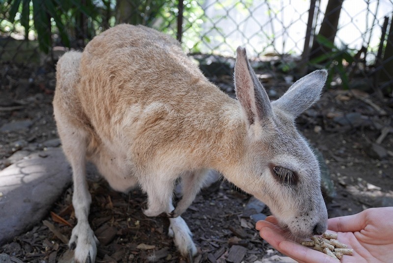 ▼ワイルドライフハビタット動物園でワラビーに餌やり